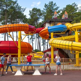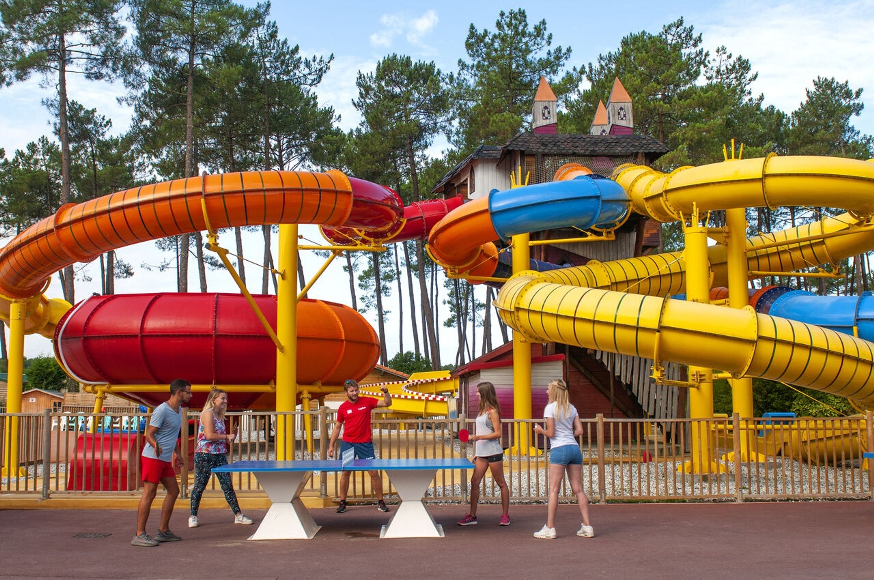The campsite incorporates elements of local Landais architecture and traditions, reflecting the regional identity of southwestern France.
