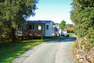 La Frétille campground stretches across a natural terrain with designated areas for tents and bungalows, located just 800 meters from the Atlantic beaches.