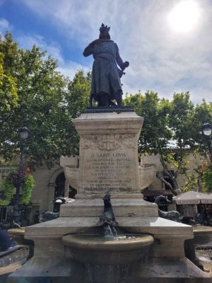 The monument, created by sculptor James Pradier in 1845, commemorates King Louis IX who launched two crusades from the port of Aigues-Mortes in the 13th century.