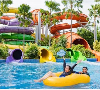 The water park features multiple swimming pools, high-speed water slides, and specialized areas designed specifically for children and adult entertainment.
