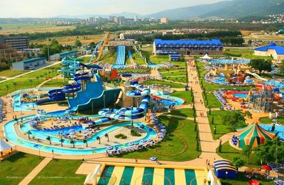 The Zolotaya Bukhta water park contains 17 swimming pools and 49 water slides distributed across 15 hectares of land near the Black Sea.