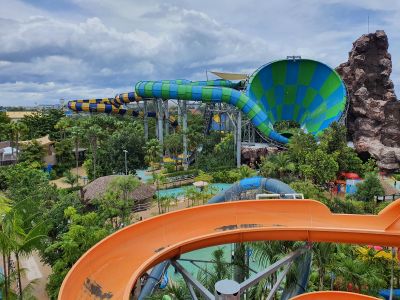 The park contains Asia's tallest artificial waterfall, reaching 31 meters in height, and includes Thailand's first anti-gravity tube slide called Aqualoop.