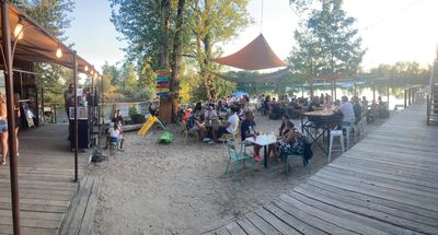 The park integrates French leisure traditions with modern water sports, creating a space where families and athletes gather for outdoor recreation.