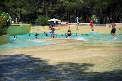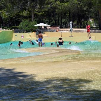 The Piscine à vagues water park features multiple swimming areas with wave pools, slides, and dedicated zones for different swimming abilities and age groups.