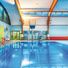 Deichwelle Allwetterbad is a water park with indoor and outdoor pools plus sauna facilities in Neuwied. The complex includes a 25-meter sports pool with multiple lanes, separate pools for children and non-swimmers, a 3-meter diving platform with its own basin, and features like water jets and massage stations in the outdoor area.