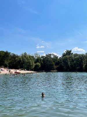 The lake originated from sand and gravel extraction activities that continued until the late 1950s before its transformation into a swimming facility in 1960.