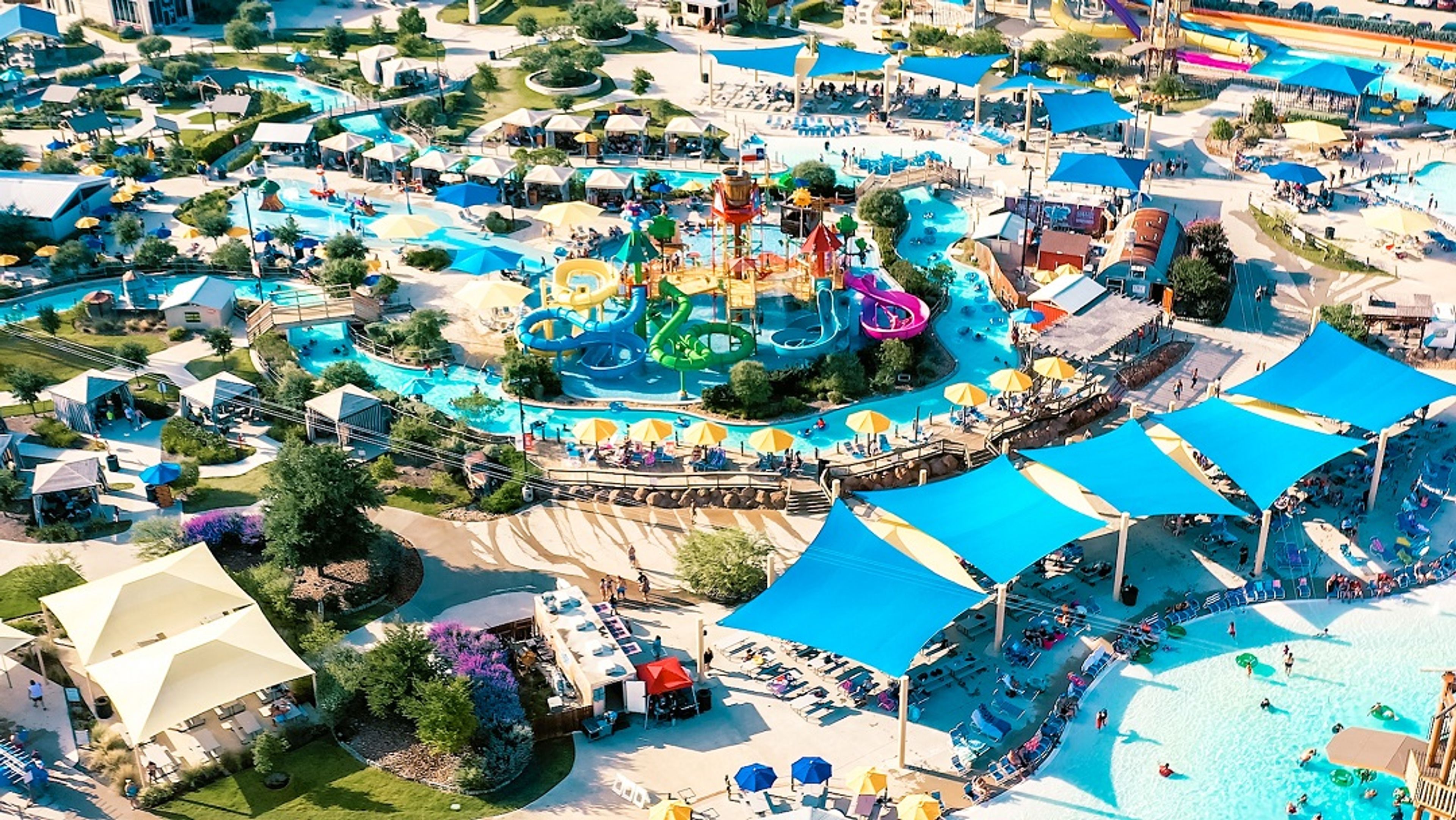 The 23-acre Typhoon Texas Austin water park contains multiple slide towers, a 10,000-square-foot activity pool, and a 1,000-foot-long lazy river for water recreation.
