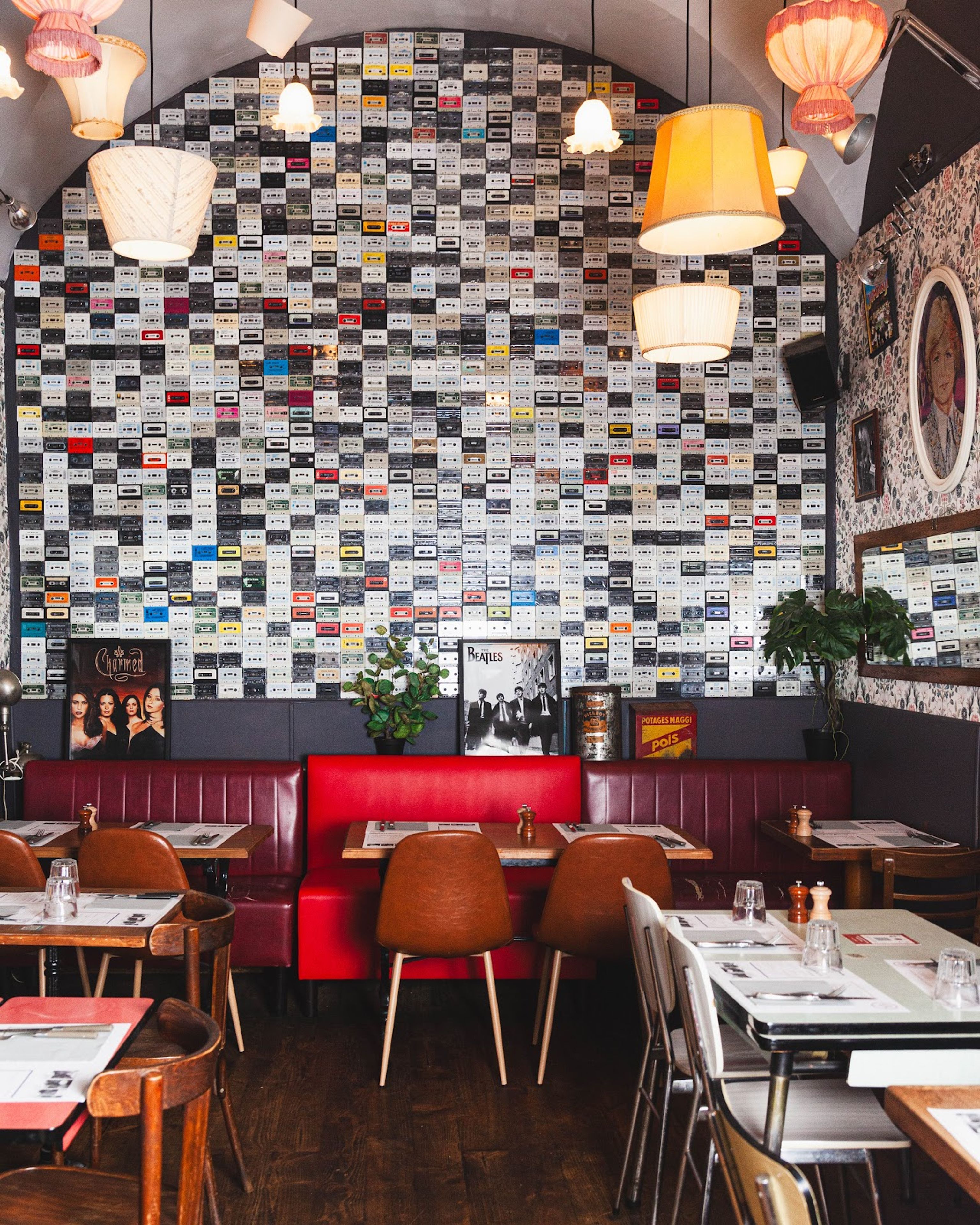 The interior decoration features elements from the 1980s and 1990s, including images of Albator, Goldorak, and Mario Bros on the restaurant walls.