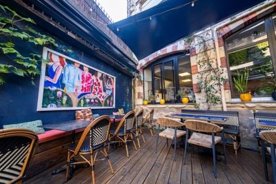 The venue features a collection of velvet sofas and a 40-seat terrace, with space for 100 guests across multiple dining zones.