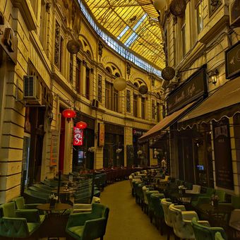 Pasajul Vilacrosse, Covered pedestrian passage in central Bucharest, Romania.