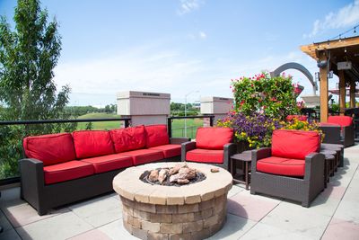 The rooftop terrace provides unobstructed views of the surrounding area and creates an inviting space for outdoor dining during the warmer months of the year.