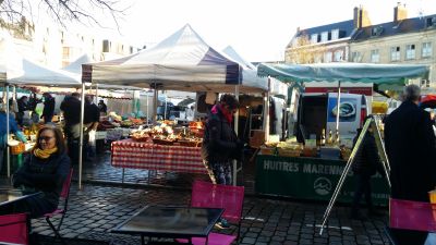 Vendors display their products in traditional wooden stalls, creating rows of colorful arrangements that reflect the agricultural heritage of northern France.