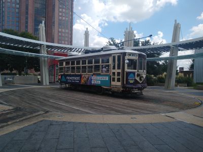 Each trolley car at McKinney Avenue Station maintains its individual historical characteristics while incorporating modern heating and air conditioning systems for passenger comfort.