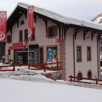 Schneesportschule Leukerbad, Ski school building in Leukerbad, Switzerland.