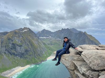 Viewpoint Rock, Panoramic viewing point in Flakstad, Norway.