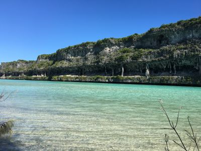 The Lekiny Cliffs extend for three kilometers along the eastern coast of Ouvea, reaching a height of twenty meters above the Pacific Ocean.