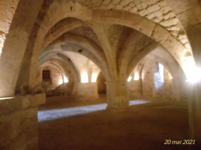 The Saint André crypt features stone vaulted ceilings and substantial columns, displaying thirteenth-century Gothic architectural elements.
