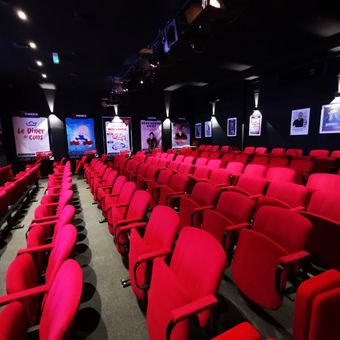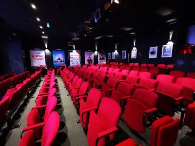 The theater welcomes 160 guests in a red velvet seating arrangement located behind Place de Verdun in La Rochelle city center.