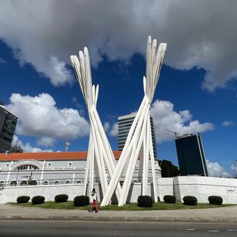 Completed in September 2017, this memorial stands between the Angola Post Office and Naval Command, marking the sacrifices of unidentified soldiers since 1961.