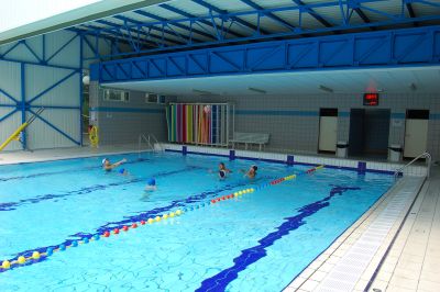 The Fernand-Blanluet swimming pool features a 25-meter pool with four lanes, offering dedicated areas for both recreational and competitive swimming activities.