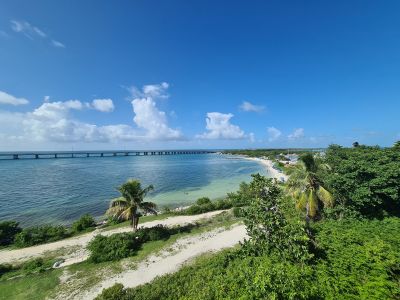 Loggerhead Beach features a sandy coastline with clear waters along the Florida Keys, providing views of the Atlantic Ocean and Gulf of Mexico.