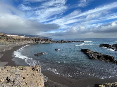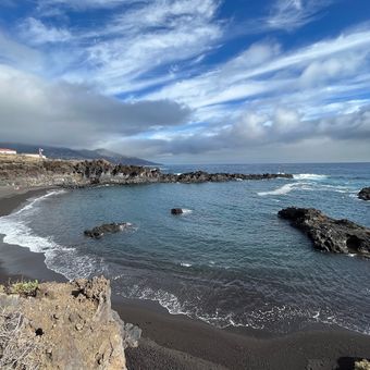 The beach emerged from ancient volcanic activity that shaped La Palma's coastline, creating the characteristic dark sand and protective rock formations.