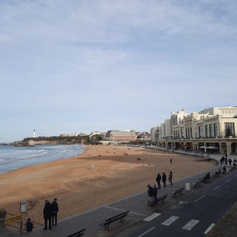 Grande Plage extends along the French coastline, offering an expanse of golden sand with direct access to the Atlantic Ocean waters.