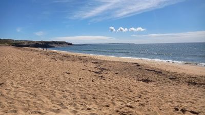 The beach connects to a 120-hectare natural reserve that includes marshlands and the Saudraye valley, home to diverse coastal bird species.