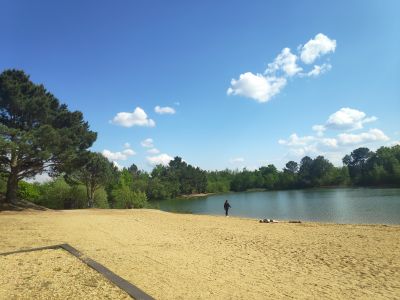 Plage des Sablières, Riverside beach in Écouflant, France.