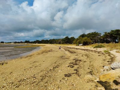 Visitors can reach the beach via ferry service to Île-d'Aix, with the shore located near the Maison de la Nacre museum.