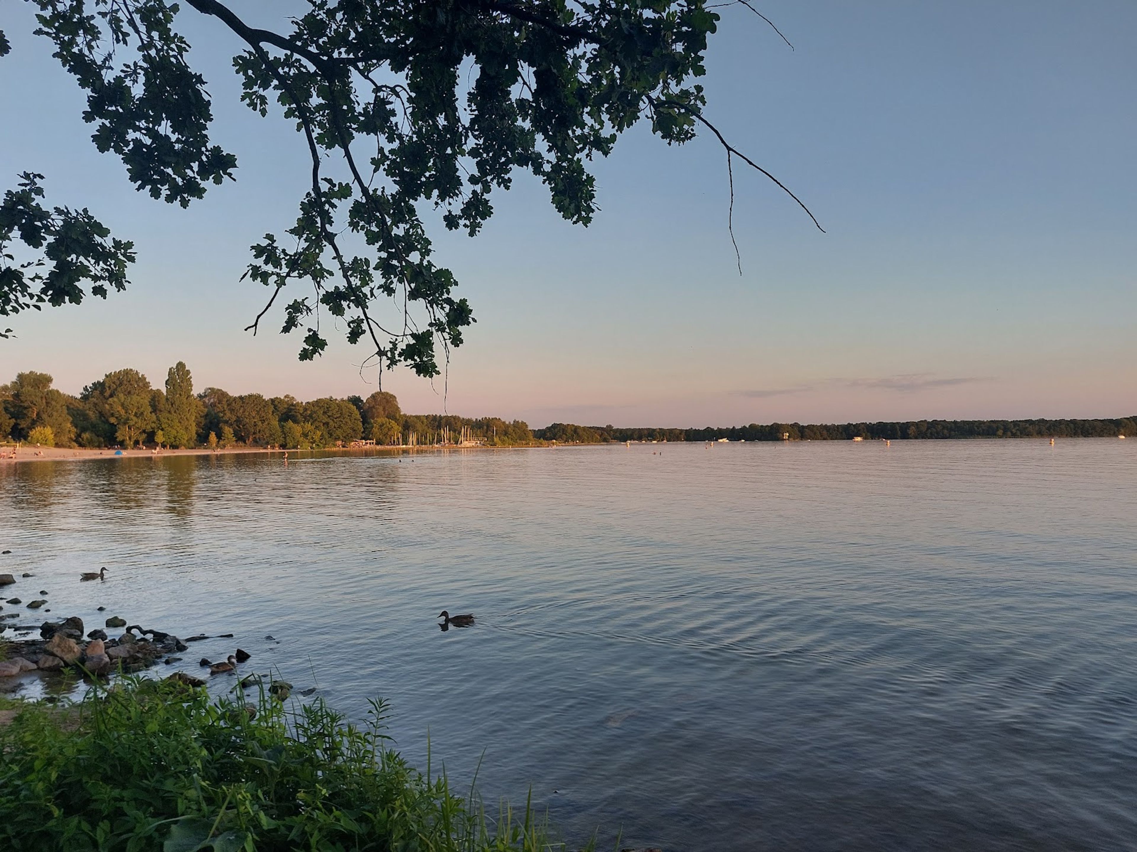 The FKK-Strandbad Müggelsee extends over 150 meters along the shore, offering a spacious sandy beach adjacent to the largest lake in Berlin.