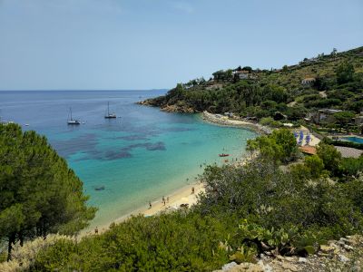 The beach forms part of Isola del Giglio's maritime heritage, where ancient Etruscan vessels once sailed through these crystalline waters.