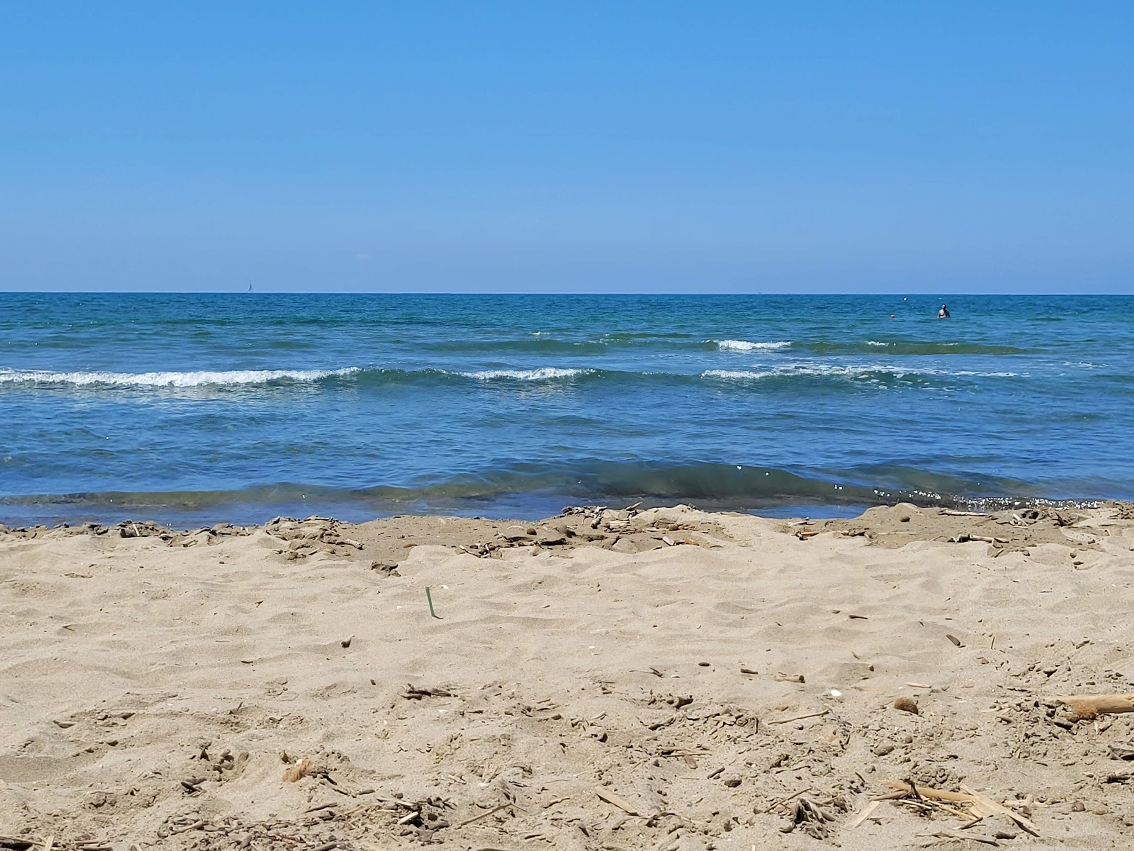 The fine amber sand stretches along four kilometers of coastline with a gentle slope into the Tyrrhenian Sea, making it suitable for all visitors.