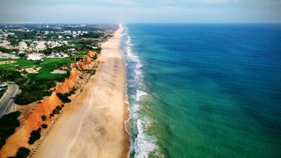 The beach forms part of the Golden Triangle, connecting three premium resorts between Quinta do Lago and Vilamoura in the Algarve region.