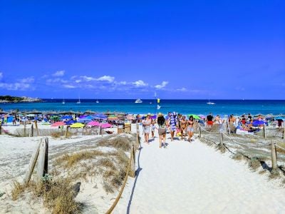 Cala Agulla extends for 520 meters along the northeastern coast of Mallorca, featuring white sand and water appropriate for swimming and water activities.