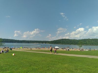 East Fork Public Beach extends along 1,200 feet of shoreline on Harsha Lake, surrounded by 4,870 acres of natural forest and rolling hills.