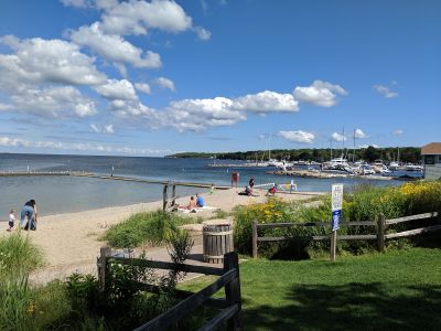 Sister Bay Beach extends over 1,900 linear feet of waterfront, featuring 600 feet of sand beach along the shores of Lake Michigan.