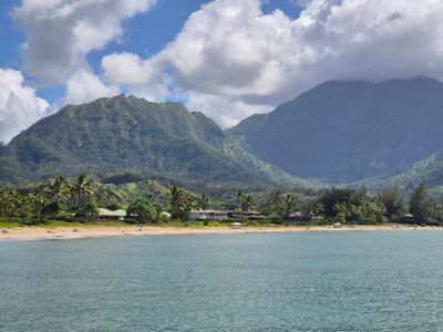 Visitors can access three separate parking areas along the beach: near Nualolo Road, by Hanalei Pier, and at Black Pot Beach Park.