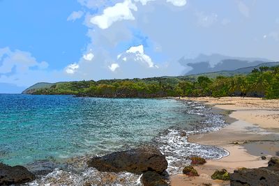 Plage de Leroux, Sand beach in Deshaies, Guadeloupe.