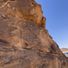 The rock carvings display a range of subjects including human figures, birds, monkeys, gazelles, and scenes of animals pulling carts across the sandstone surfaces.