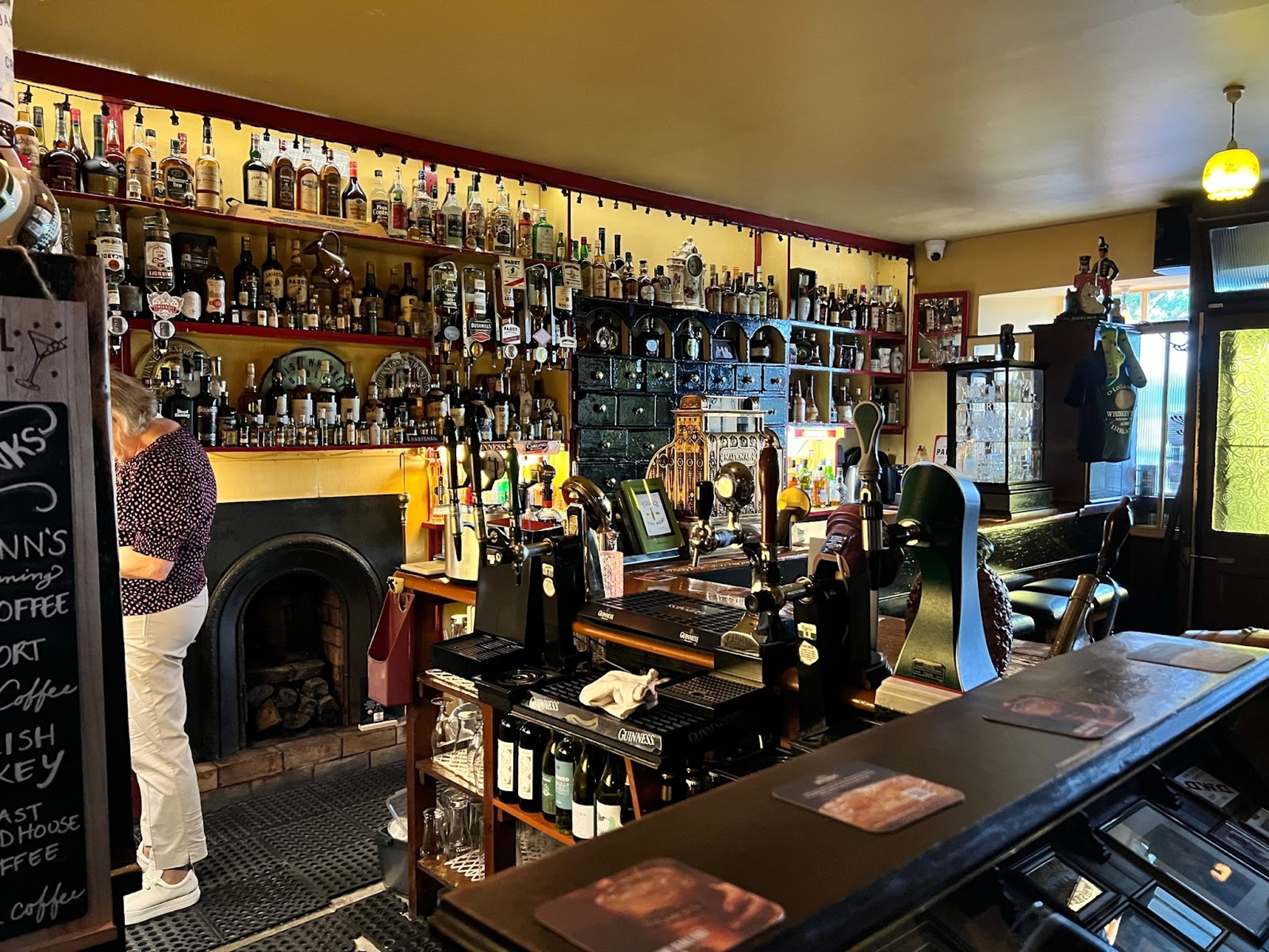 The bar maintains a selection of over 300 different whiskey bottles, including rare Irish editions no longer in production.