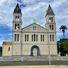 The Cathedral of São Tomé stands at Praça do Povo, featuring a neo-romanesque main façade and an eclectic revival architectural style from its 1956 renovation.