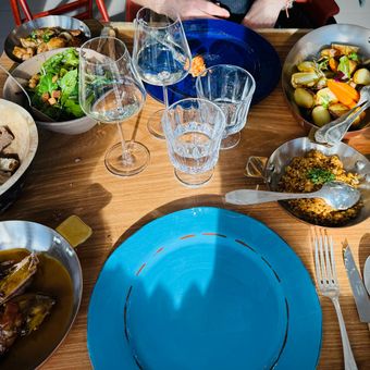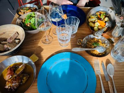 The restaurant applies a table d'amis concept where guests share classic dishes in a communal dining experience that celebrates regional gastronomy.