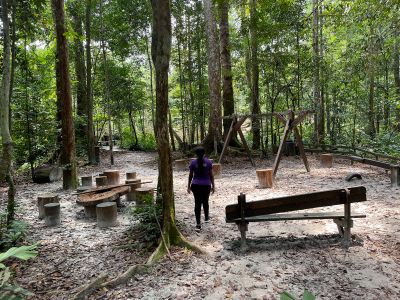 The arboretum forms part of the Arc d'Émeraude project, connecting three protected areas around Libreville with a suspended canopy path 20 meters above ground.