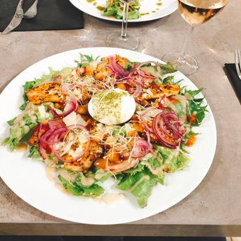 The kitchen prepares specialties such as foie gras opera and Ségala veal duo, earning recognition with a Michelin Bib Gourmand distinction.
