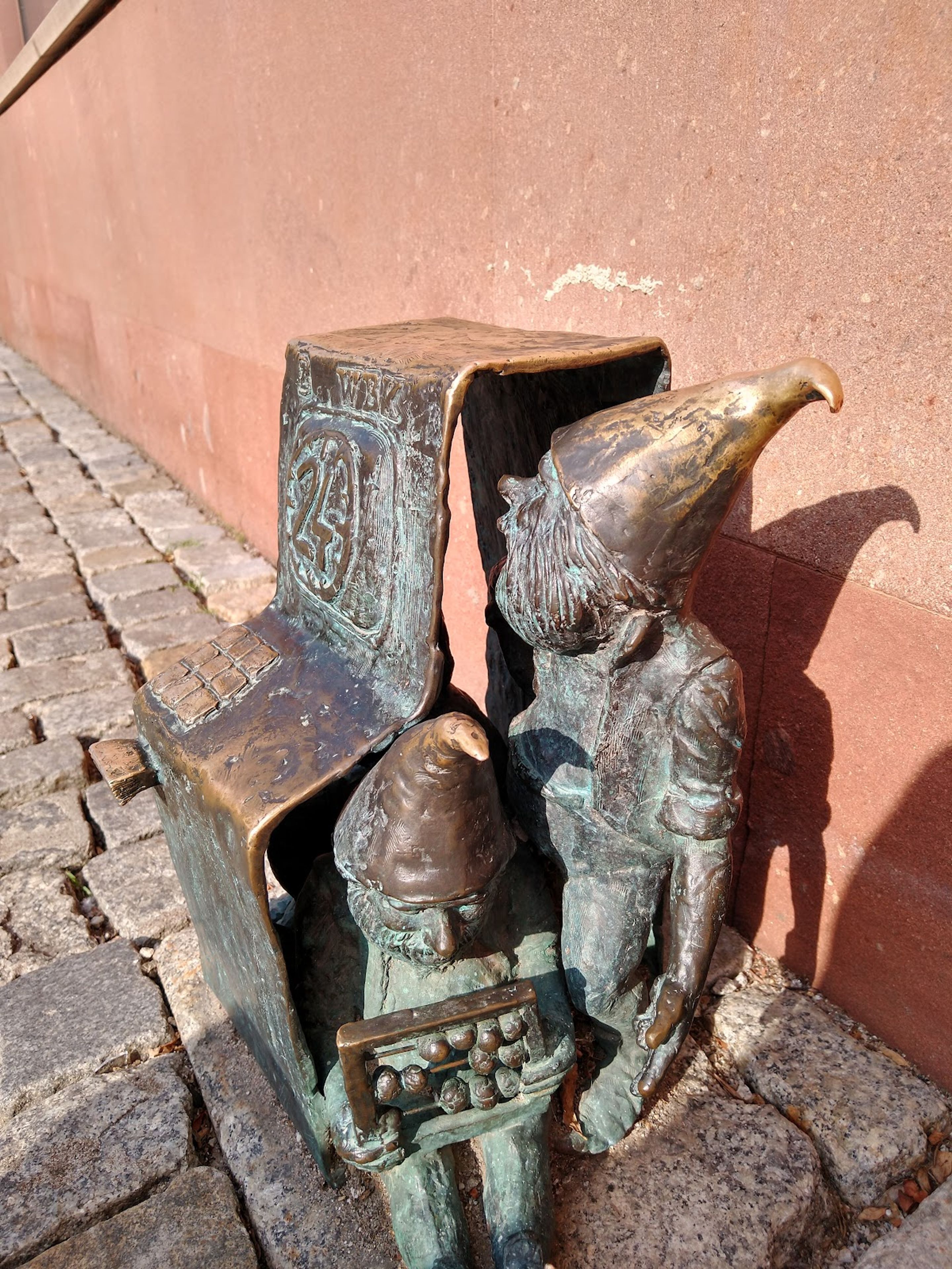Bankomatki, Bronze dwarf statue in Stare Miasto, Wrocław, Poland.