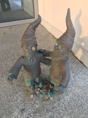 Eldżej i Modułek, Dwarf statue at LG factory entrance in Biskupice Podgórne, Poland.