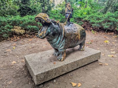 Hipoczyściciel, Bronze dwarf statue in Biskupin-Sępolno-Dąbie-Bartoszowice district, Wrocław, Poland.