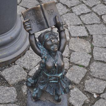 Krasnale Demokracja, Dwarf statue in Stare Miasto, Wrocław, Poland.