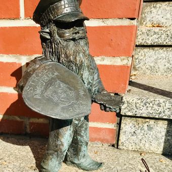 Krasnal Strażnik Miejski, Dwarf statue in Przedmieście Oławskie, Wrocław, Poland.